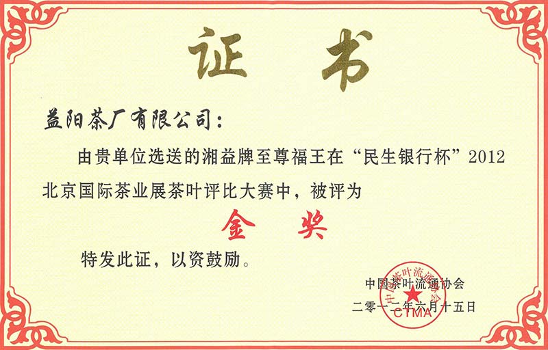 获北京国际茶展民生银行杯金奖