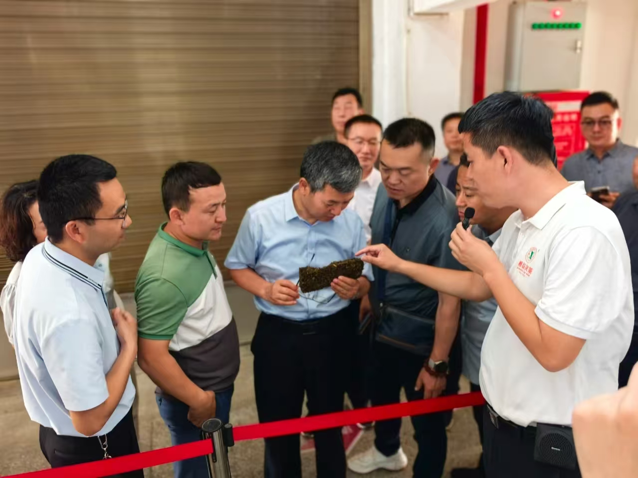 调研组实地参观了益阳茶厂筛分车间、压制车间及核心工艺区金花酵库”,并通过有关历史文献与实物展陈等,详细了解了茯砖茶从原料筛选到发花干燥的工艺流程,了解了益阳茶厂自1958年建厂以来通过“一片茶守护边疆”所展现的使命担当,连续67年向新疆、青海、甘肃等地无间断调拨茯砖茶超60万吨,依托万吨级原料储备和智能化生产线,构建起边疆民生茶长期稳定供应体系。