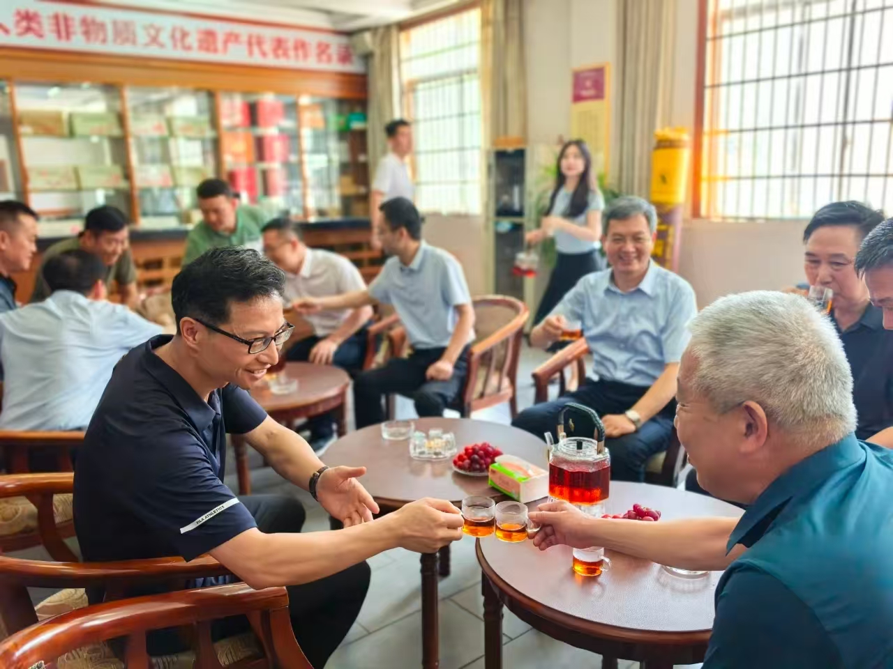 5月21日,新疆维吾尔自治区供销合作社联合社党组成员、理事会副主任王贵勇、中华全国供销合作总社人事部副部长、自治区供销社政策法规处处长何贤志,吐鲁番市供销社党组书记、理事会主任魏学光,高昌区供销社党组书记、理事会主任王朝阳,鄯善县供销社党组书记、理事会主任陈,托克逊县供销社党组书记、理事会主任李长红等调研组一行,在湖南省供销合作总社二级巡视员赵劲松、省茶业集团纪委书记、工会主席褚世炯等领导陪同下,赴益阳茶厂有限公司调研边销茶产销情况。双方围绕边疆民生茶供应展开深入交流,共同续写湘疆两地七十载茶业情缘。